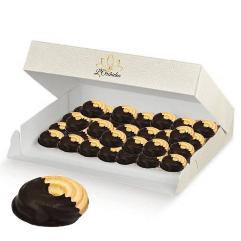 La pasticceria di Bernalda L'Orchidea è rinomata in tutta la regione per la sua produzione di pasticcini, mignon e biscotti secchi. Tra le specialità prodotte, i frollini ferri di cavallo al cioccolato sono di una friabile pasta frolla ricoperta all'estremità da un rivestimento di cioccolato fondente. Ideali a colazione od in qualsiasi momento della giornata per uno snack semplice e delizioso.adatti anche si più piccoli.