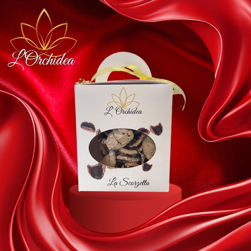 La scorzetta di Bernalda è un dolce leggero, creato senza burro, con pochi e semplici ingredienti come lo zucchero, l’albume d’uovo, le mandorle, il cacao ed il cioccolato. Prova la Scorzetta in qualsiasi momento della giornata per uno snack affinato, semplice e delizioso! La scorzetta è il dolce perfetto per qualsiasi momento. Regalati o regala un momento di raffinata dolcezza con le scorzette di Bernalda